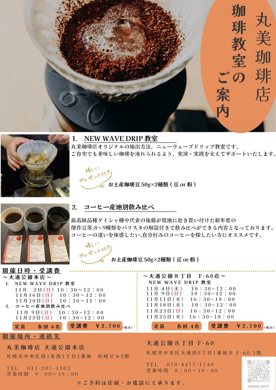 ~11月珈琲教室のご案内~大通公園本店・大通公園8丁目 F-60店